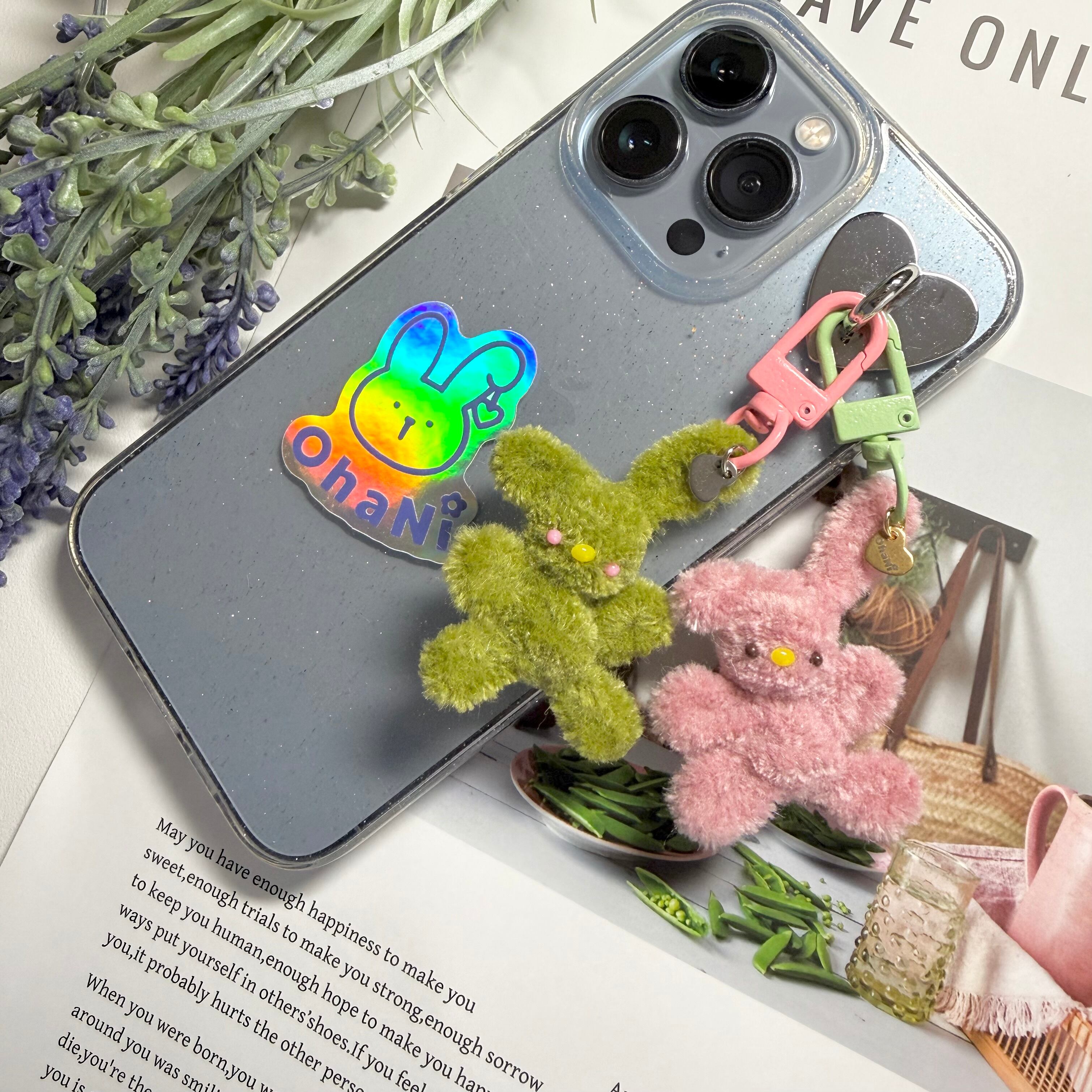 スマホには、背面に貼り付けるキーリングハンガーを使うと可愛いのでおすすめです!